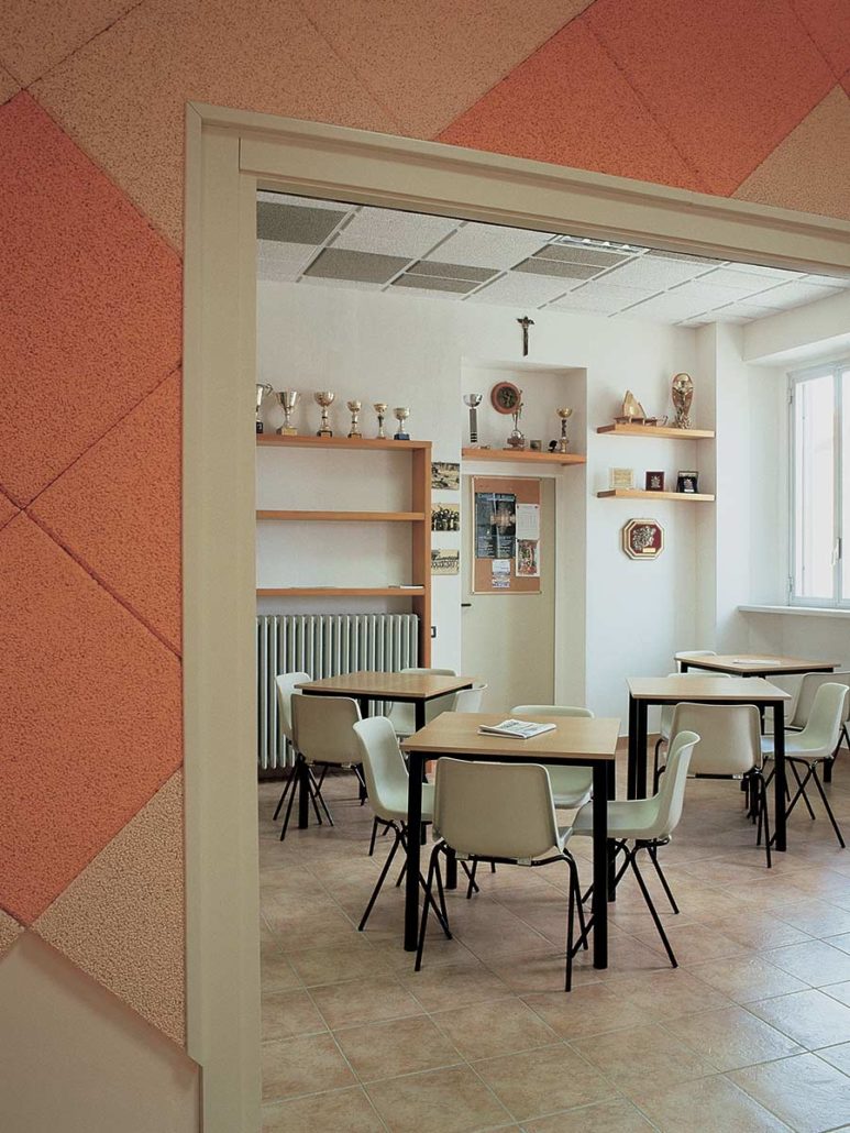 La versatilità dei pannelli SoKoVerd.C1, che si prestano a essere tinteggiati o possono essere forniti già colorati in una vasta gamma cromatica, ha permesso di personalizzare in modo originale l’ambiente, disegnando delle note musicali sulle pareti. “Anche questa possibilità è stata valutata molto favorevolmente: visto che dobbiamo fare il lavoro, si è detto, tanto vale cercare un buon risultato estetico e qualcosa di originale”.